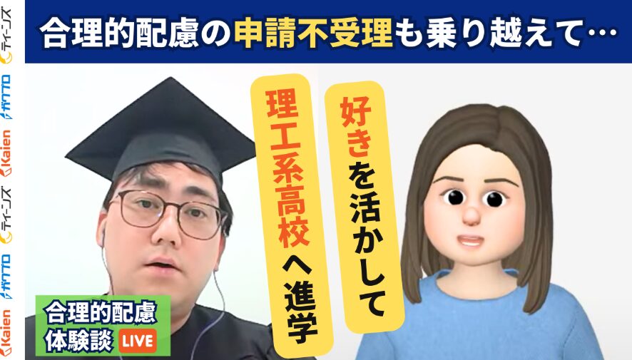モーリヤ君:高校受験のとき、合理的配慮は申請されましたか?