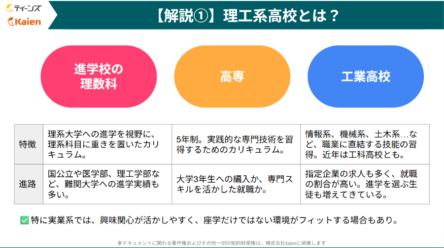 理工系高校は興味・関心を伸ばせる一方で、学習面はかなりハードになることがあります。もし留年や中退が見えてきたときには、早めに「プランB」を考えることも大切です。