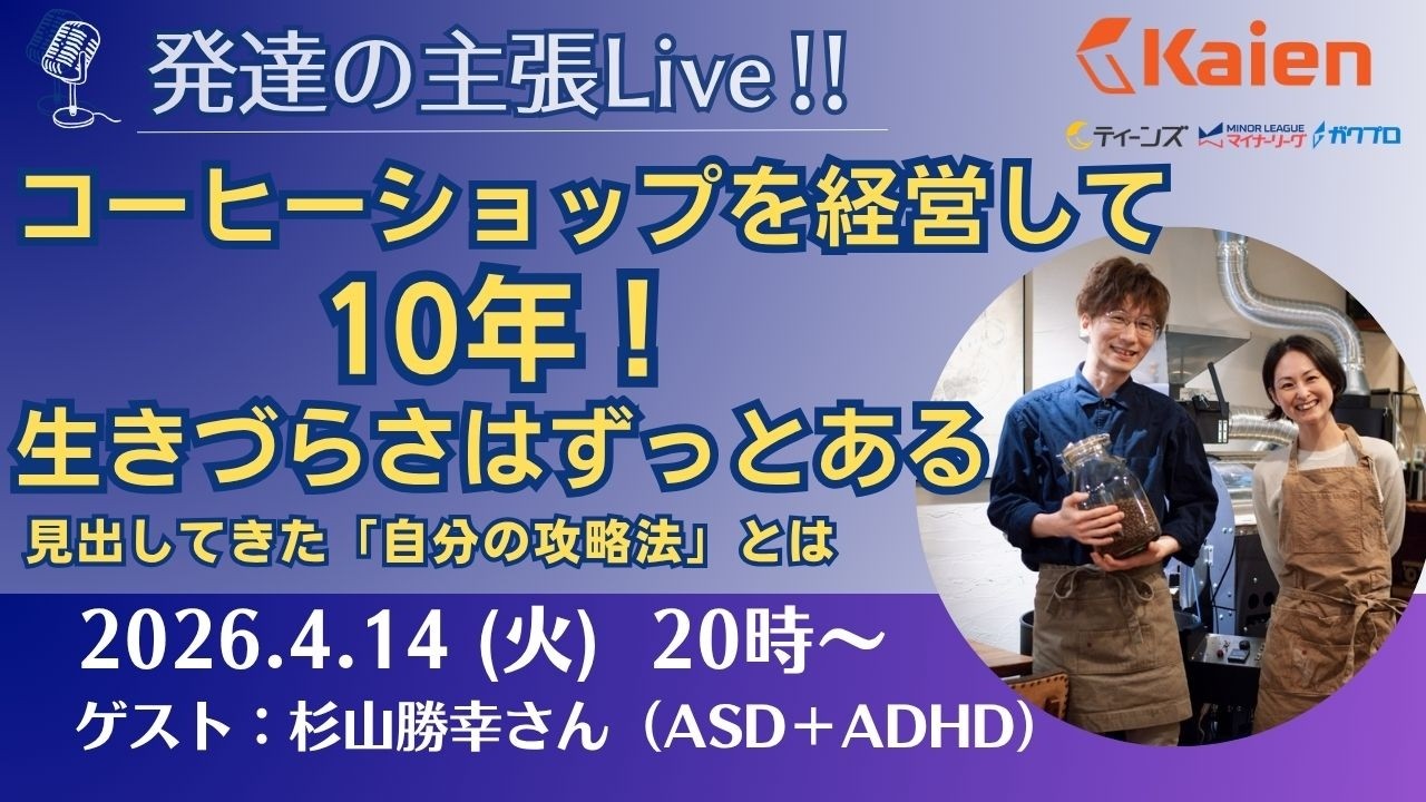 Kaien/ティーンズ代表の鈴木が、ニューロダイバーシティ/発達障害/精神障害に関するご相談にお答えする「お悩み解決ルーム」です。