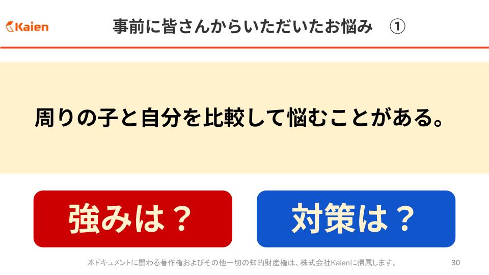 講演では、この「悩みを発信できている」こと自体が、一つの大きな「自己開示」であり、とても勇気ある素晴らしい行動であることをまずお伝えしました。